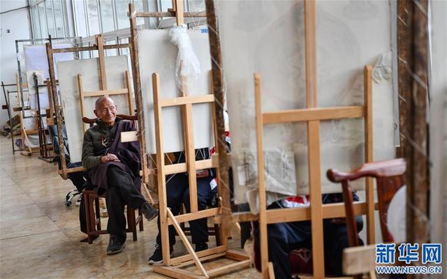 嘎瑪?shù)吕绽先嗽谖鞑夭际锌ㄈ魠^(qū)嘎瑪鄉(xiāng)的民族手工藝培訓(xùn)基地里教學(xué)員們畫(huà)唐卡(10月3日攝)。新華社記者 普布扎西 攝