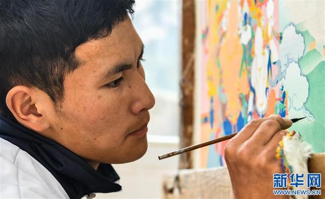 在西藏昌都市卡若區(qū)嘎瑪鄉(xiāng)的民族手工藝培訓(xùn)基地,學(xué)員在學(xué)習(xí)畫(huà)唐卡(10月3日攝)。新華社記者 普布扎西 攝