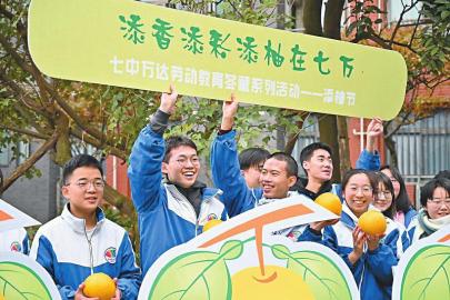 12月4日,成都七中萬(wàn)達(dá)學(xué)校首屆“添柚節(jié)”開(kāi)幕。“添柚節(jié)”覆蓋了多個(gè)年級(jí),設(shè)置了多項(xiàng)活動(dòng),并融入學(xué)科元素,如初一年級(jí)結(jié)合生物和美術(shù)學(xué)科,或用柚子做小零食進(jìn)行義賣,或在柚子上繪出不同的圖案;初二年級(jí)則結(jié)合地理和美術(shù)學(xué)科,描繪出一幅幅中國(guó)的“水果”地圖;高三年級(jí)的學(xué)生摘下柚子與老師一同品嘗豐收的味道。
