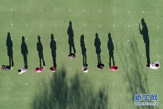 12月14日,河北省樂亭縣第三幼兒園的孩子們?cè)谕娌雀哕E游戲(無人機(jī)照片)。