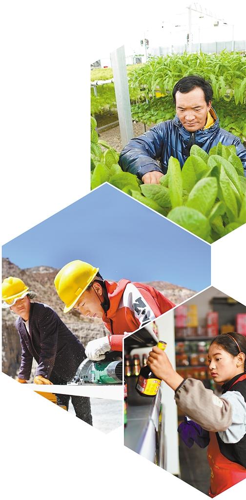 圖①: 在噶爾縣生態(tài)農(nóng)業(yè)產(chǎn)業(yè)園內(nèi),噶爾縣左左鄉(xiāng)上左左村村民宿加在查看蔬菜生長情況。新華社記者 詹彥 攝 圖②:八宿縣擁巴鄉(xiāng)村民格松旺扎(右)在八宿縣西巴村小型磚廠里忙碌。新華社記者 詹彥 攝 圖③:丁青縣尺牘鎮(zhèn)烏巴村村民斯朗德吉在尺牘鎮(zhèn)的一家超市里打工。新華社記者 詹彥 攝