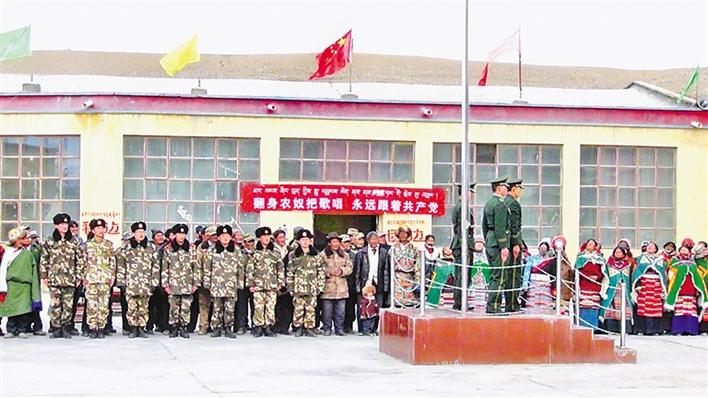 圖為3月28日,烏江村軍民聯(lián)合開展“翻身農(nóng)奴把歌唱 永遠(yuǎn)跟著共產(chǎn)黨”升國旗活動(dòng)。