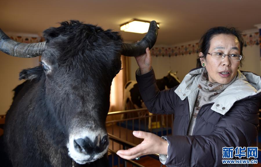 2019年2月28日,在西藏自治區(qū)農(nóng)科院畜科所,姬秋梅利用牦牛標(biāo)本講解牦牛生長特點(diǎn)。1988年,姬秋梅從西藏民族學(xué)院(現(xiàn)西藏民族大學(xué))農(nóng)牧系畢業(yè),被分配到西藏自治區(qū)農(nóng)科院畜科所,從事牦牛研究工作,后在中國科學(xué)院地理科學(xué)與資源研究所繼續(xù)深造,并出國留學(xué)獲得博士學(xué)位,2002年歸國。新華社記者 覺果 攝