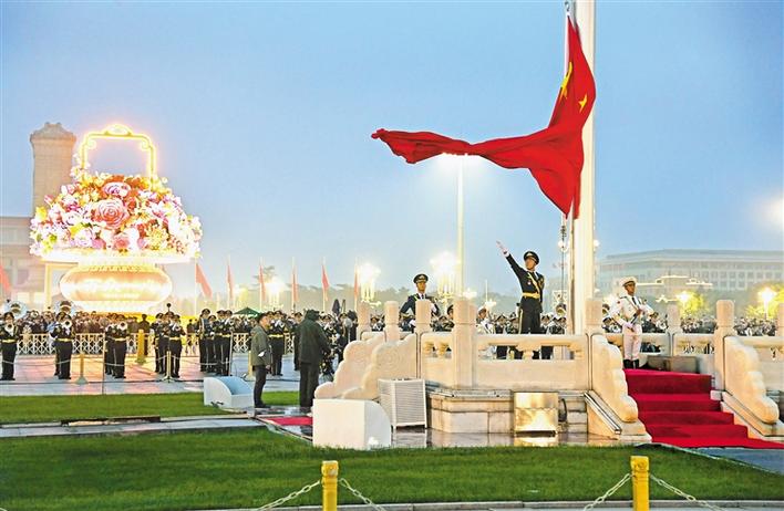 10月1日清晨,隆重的升國(guó)旗儀式在北京天安門(mén)廣場(chǎng)舉行,慶祝中華人民共和國(guó)成立71周年。新華社記者 任超 攝