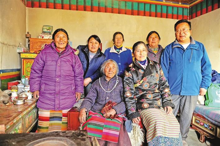 圖為烏巴·平措南加的妻子次仁卓嘎和6個(gè)子女合影,左二為格桑玉珍,右一為曲阿。記者 溫凱 洛桑旦增 達(dá)珍 攝