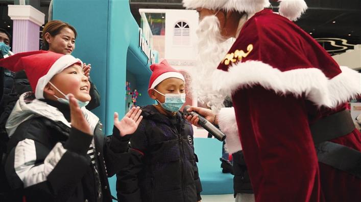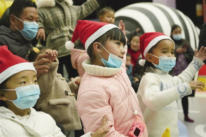 旋轉(zhuǎn)木馬、淘氣堡、滑梯……7歲的丹增達色玩得小臉紅撲撲,她告訴記者,這是她第一次來第三極歡樂世界,能和這么多小伙伴一起玩耍,真得很開心?!敖裉煊羞@么多叔叔阿姨們陪我們一起唱歌、跳舞,還送了我們小禮物,我很喜歡?!钡ぴ鲞_色笑著說。