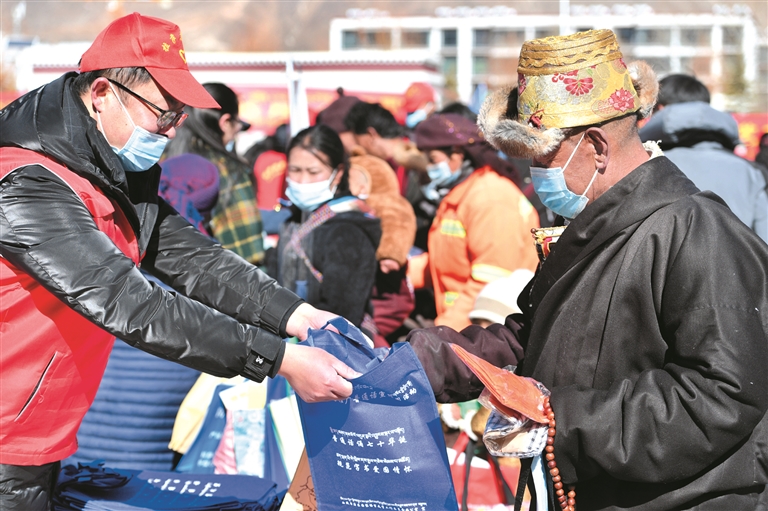 隨著春節(jié)、藏歷新年腳步越來越近,熱熱鬧鬧的年味越來越濃。2月1日,由拉薩市委宣傳部牽頭,市文聯(lián)、市教育局、市司法局、市衛(wèi)健委等16家單位走進(jìn)墨竹工卡縣新時(shí)代文明實(shí)踐中心,開展文化科技衛(wèi)生法律愛國(guó)愛教服務(wù)“五下鄉(xiāng)”活動(dòng),為當(dāng)?shù)厝罕娝蜕闲履甓Y物。