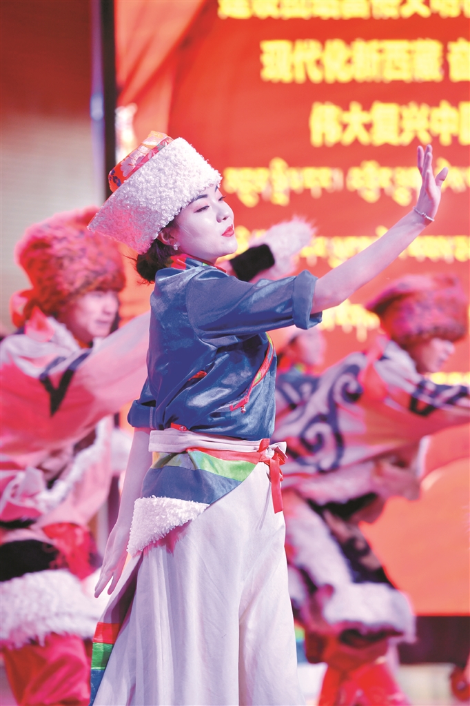 活動(dòng)現(xiàn)場(chǎng),演員們?yōu)榇蠹規(guī)砹司实母栉璞硌?。圖片由拉薩融媒視覺組攝