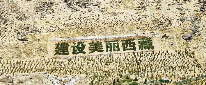 在柳梧大橋附近公路旁的一座山上,一排由綠樹組成的“建設(shè)美麗西藏”幾個大字讓人眼前一亮?!斑@就是我們公司設(shè)計完成的,花費了我們很多心血,也因為這一單業(yè)務(wù)的成功,我們公司在市場上得到了認(rèn)可?!备裆K苤钢鴰讉€大字高興地說。