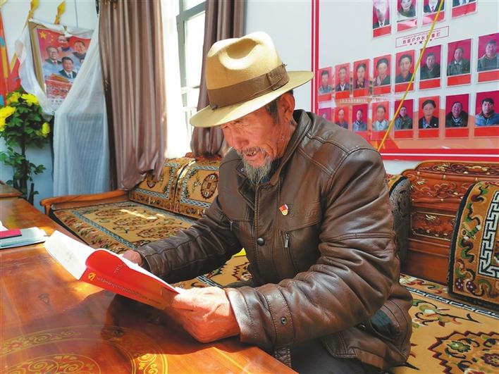 圖為拉孜縣錫欽鄉(xiāng)錫欽村老人阿旺仁增正在閱讀學習。記者 扎西頓珠 攝