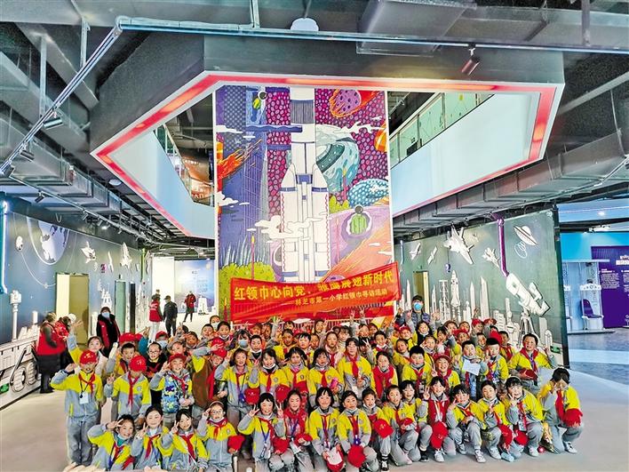 圖為林芝市第一小學的學生們在青少年科普中心參觀并合影留念。王珊 張猛 攝