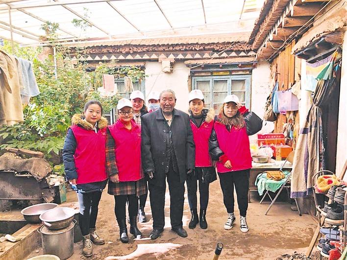 圖為志愿者為獨(dú)居老人打掃衛(wèi)生后和老人合影。 周婷婷 攝