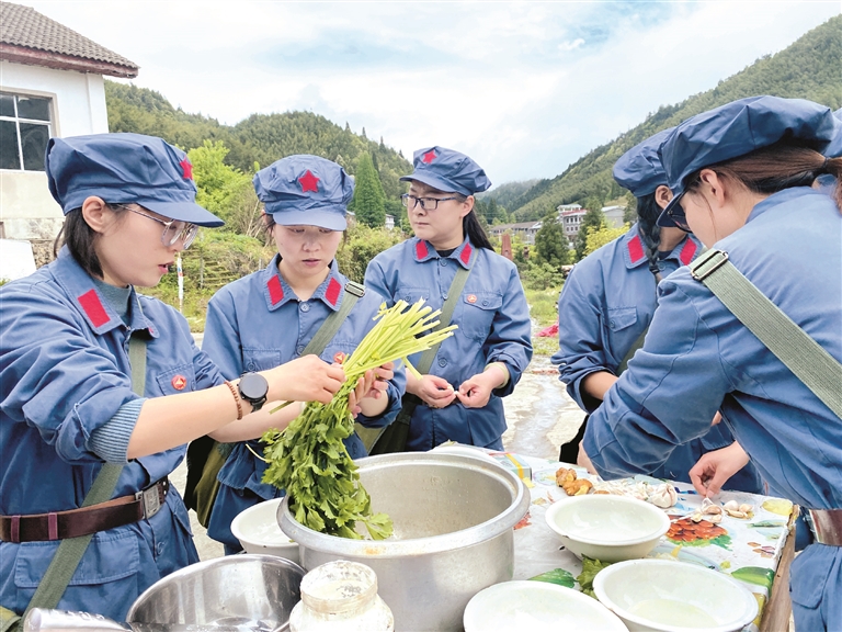 自制紅軍餐是拉薩市參訓(xùn)學(xué)員進(jìn)行革命傳統(tǒng)教育的內(nèi)容之一。紅軍餐中的每一道菜都有特殊的意義,學(xué)員們利用準(zhǔn)備好的食材、廚具、柴火等,完成了生火、洗菜、切菜、炒菜等紅軍餐制作全流程。一道道簡樸卻不失美味的紅軍菜肴,讓大家深深感受到了井岡山革命時期生活條件的艱苦。