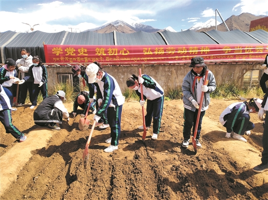 圖為拉薩北京實(shí)驗(yàn)中學(xué)的學(xué)生們?cè)谔镩g勞動(dòng)。拉薩融媒記者 莫瑞英攝