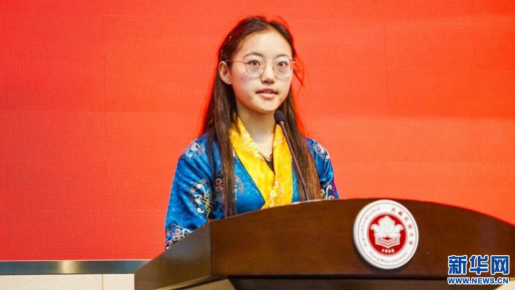 2020年度寶翔勵志獎學(xué)金獲得者貢吉旺姆在表彰大會上發(fā)言