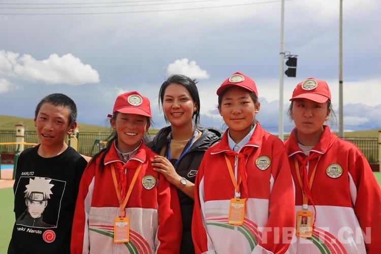圖為西藏自治區(qū)那曲市色尼區(qū)杭嘉中學英語老師旦增卓瑪(左三)與學生們合影 攝影:吳建穎