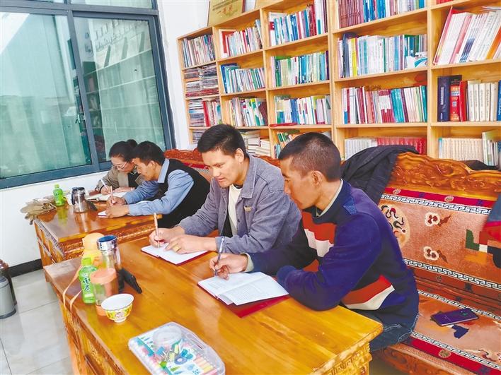 圖為薩迦縣木拉鄉(xiāng)基層工作者通過(guò)手機(jī)參與線上“微講堂”培訓(xùn)班學(xué)習(xí)。記者 汪純 攝