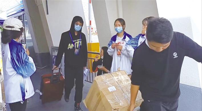 據(jù)迎新工作人員介紹,新生入校后,黨員志愿服務(wù)隊(duì)會(huì)對新生進(jìn)行身份核驗(yàn)、測體溫,學(xué)生志愿服務(wù)隊(duì)會(huì)幫新生將行李搬運(yùn)至新生報(bào)到處,新生在報(bào)到處辦理好入學(xué)手續(xù)后,志愿服務(wù)隊(duì)的工作人員還會(huì)負(fù)責(zé)將學(xué)生行李搬運(yùn)至新生宿舍。