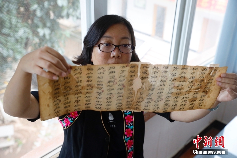 9月8日,云南楚雄,修復(fù)師檢查剛修復(fù)出來(lái)的古籍。楚雄彝族文化研究院位于云南省楚雄彝族自治州楚雄市,是云南省從事彝族文化專門(mén)研究的社會(huì)科學(xué)研究機(jī)構(gòu)。該院始終注重對(duì)彝文古籍的收集、翻譯、整理等搶救性工作,現(xiàn)已收集了近3000部彝文古籍。 中新社記者 李嘉嫻 攝
