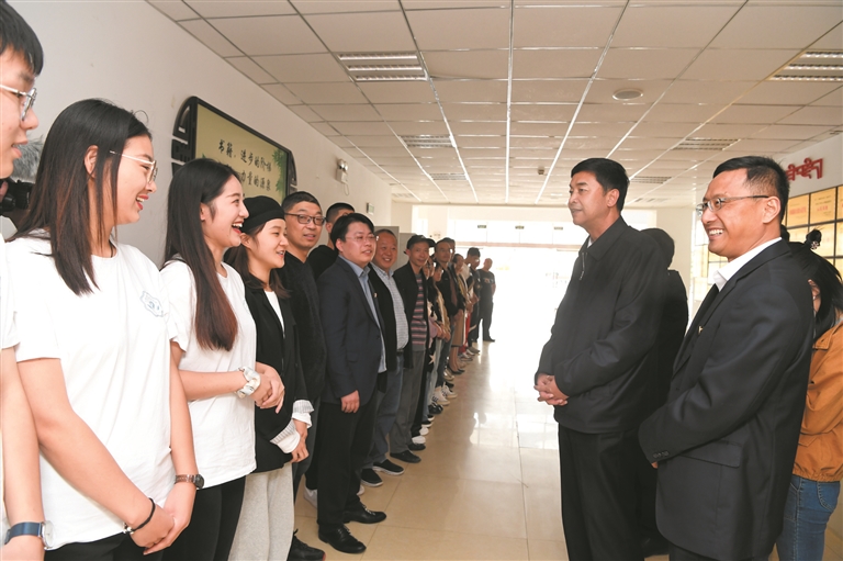 “你們辛苦了!祝大家節(jié)日快樂,身體健康,扎西德勒!”嚴金海先后來到拉薩北京高中、拉薩江蘇實驗中學(xué),看望慰問一線教師,與他們親切交談,向全市廣大教師和教育工作者致以崇高敬意,感謝他們?yōu)槲沂薪逃聵I(yè)作出的貢獻。并實地調(diào)研了解學(xué)校硬件設(shè)施、招生教學(xué)、國家統(tǒng)編三科教材使用等情況。嚴金海指出,無論是昨天、今天還是明天,西藏的發(fā)展都離不開一代又一代用知識武裝起來的建設(shè)者的努力,這都是老師們精心培養(yǎng)的結(jié)果。教師的職業(yè)是最光榮的,老師也是最偉大的,向您們致敬。只有好老師,才能教出好學(xué)生。希望大家認真學(xué)習(xí)貫徹習(xí)近平總書記關(guān)于教育工作特別是教師隊伍工作的重要論述,學(xué)習(xí)貫徹習(xí)近平總書記對黃大年式教育團隊教師代表的回信精神,堅持立德樹人根本任務(wù),加強教學(xué),提升質(zhì)量,做“四有”好老師,努力培育德智體美勞全面發(fā)展的社會主義建設(shè)者和可靠接班人。