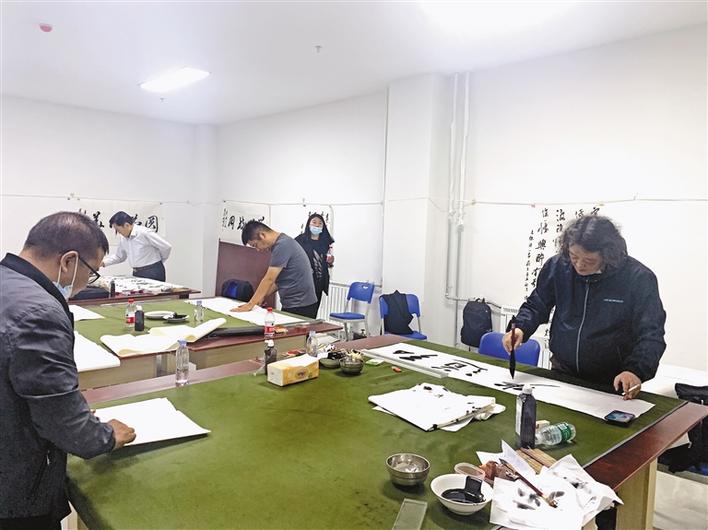 圖為北京和拉薩兩地書法家在拉薩師范高等專科學(xué)校開(kāi)展書法筆會(huì)交流。 記者 裴聰 攝