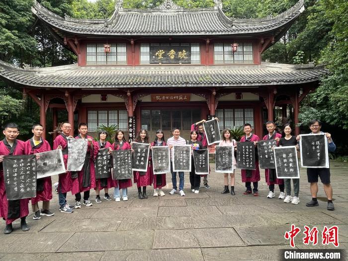 上香、祭文、行祭拜禮……在三蘇祠,臺灣大學生穿上漢服開展了祭拜活動,深入了解了中國傳統(tǒng)文化和禮儀。同時,在趣味拓片活動中,不少學生做了“但愿人長久,千里共嬋娟”字樣的拓片,表達了對中秋佳節(jié)的美好祝福。