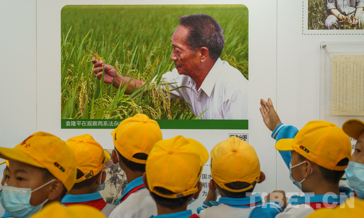 圖為學生在“雜交水稻之父”袁隆平照片前駐足 攝影:趙耀
