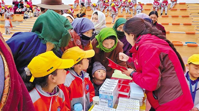 那曲市“掃黃打非”辦工作人員向農(nóng)牧民群眾和學(xué)生講解“掃黃打非”相關(guān)知識(shí)。記者 曲珍 攝