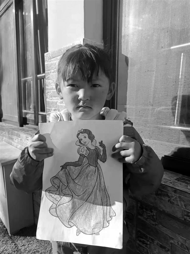 赤培村雙語(yǔ)幼兒園的珠杰在畫紙上用彩色畫筆描繪出了挖掘機(jī)的模樣,當(dāng)他向記者展示自己的心愿時(shí)說(shuō),“在所有的玩具中我最喜歡挖掘機(jī),長(zhǎng)大后我要開挖掘機(jī)?!敝榻苎哉Z(yǔ)中帶著幾分自豪。