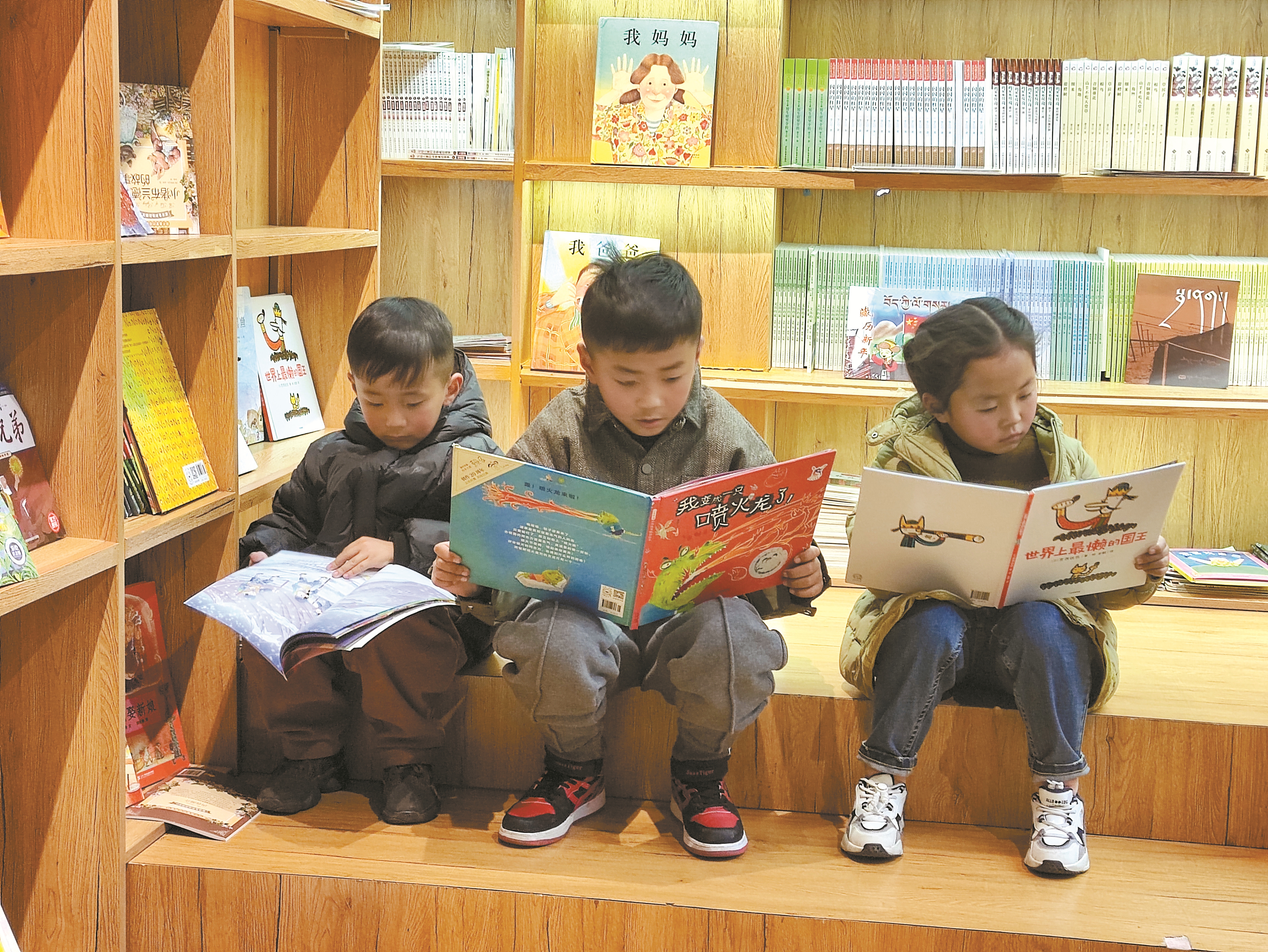 位于城關(guān)區(qū)萬(wàn)達(dá)廣場(chǎng)三樓的時(shí)光讀書(shū)驛站,環(huán)境舒適,并開(kāi)辟有專門(mén)的讀書(shū)區(qū)域,設(shè)置了桌椅,眾多讀者在這里專心學(xué)習(xí)和閱讀。該讀書(shū)驛站還開(kāi)辟了兒童閱讀專區(qū),孩子們坐在一起、手里捧著圖畫(huà)書(shū)籍看得津津有味。時(shí)光讀書(shū)驛站工作人員德吉說(shuō):“因?yàn)槲覀儠?shū)吧在一站式購(gòu)物商場(chǎng)里,平時(shí)會(huì)有很多讀者,這兩天剛好是藏歷新年,再加上是周末,所以人很多。我們這有各種暢銷(xiāo)書(shū),不管是中文還是藏文及英文書(shū)籍都很豐富。因?yàn)槲覀冮_(kāi)辟了兒童區(qū),有許多供孩子閱讀的繪本,平時(shí)周末的時(shí)候,會(huì)有許多家長(zhǎng)帶孩子來(lái)?!?/p>