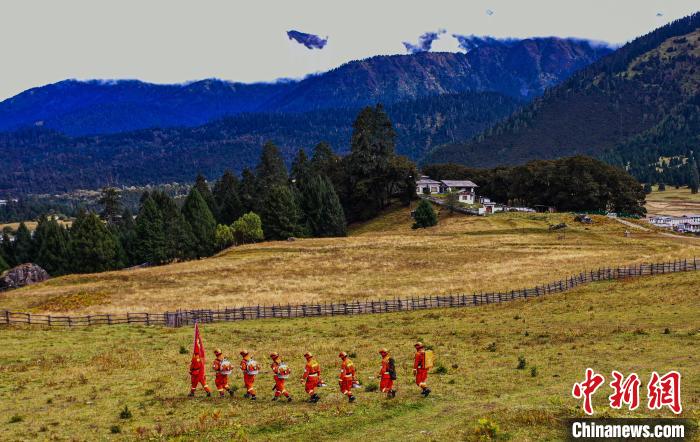 圖為森林消防隊員在魯朗國際小鎮(zhèn)景區(qū)巡護?!∥骼@拉翁 攝