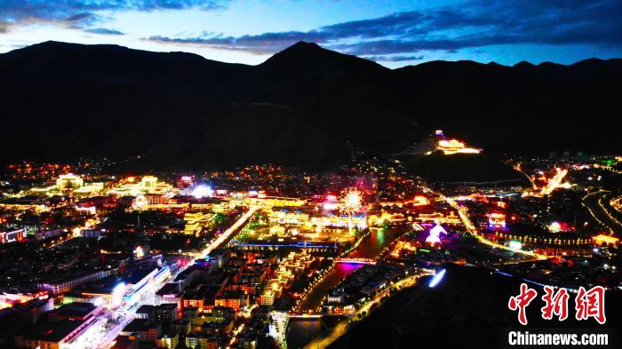 圖為玉樹市夜景?!≮w凜松 攝