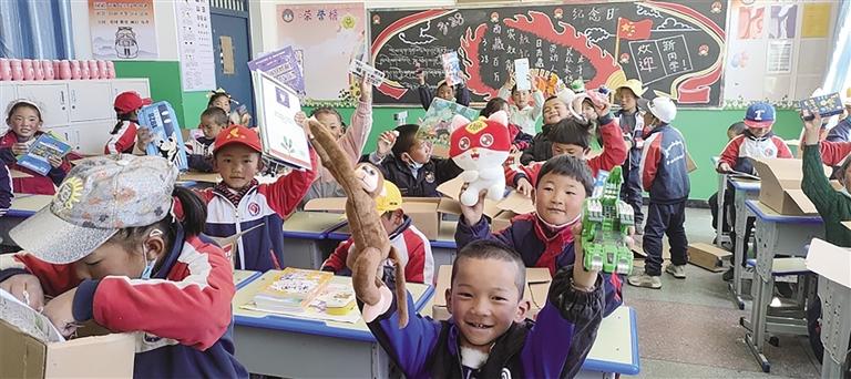 薩迦縣吉定鎮(zhèn)小學、亞東縣帕里小學的學生們收到了首批“返航”的1300個“愛心盒子”,全部來自福建省廈門市康樂小學師生,他們將通過“愛心盒子”這一公益平臺與對口的西藏小學生持續(xù)溝通交流。