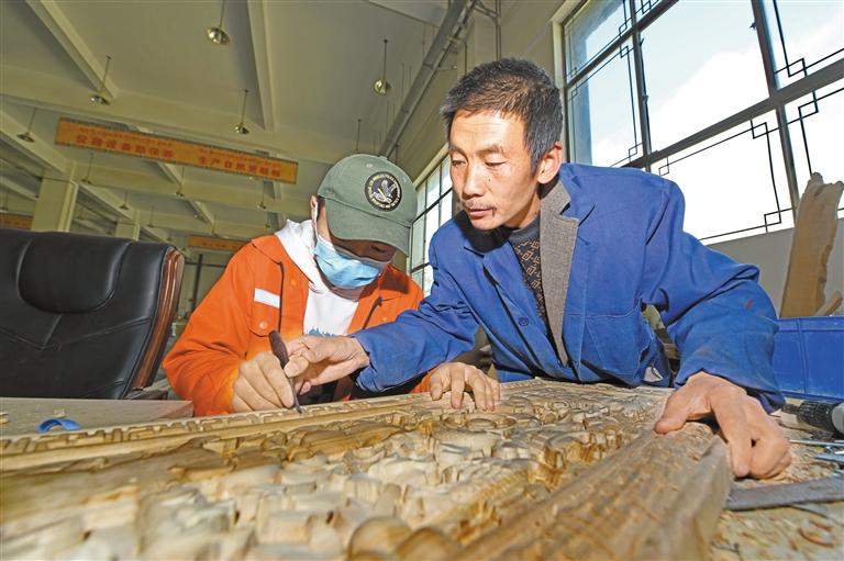 圖為拉薩市第二中等職業(yè)技術學校學生在學習制作木雕。記者 唐斌 攝