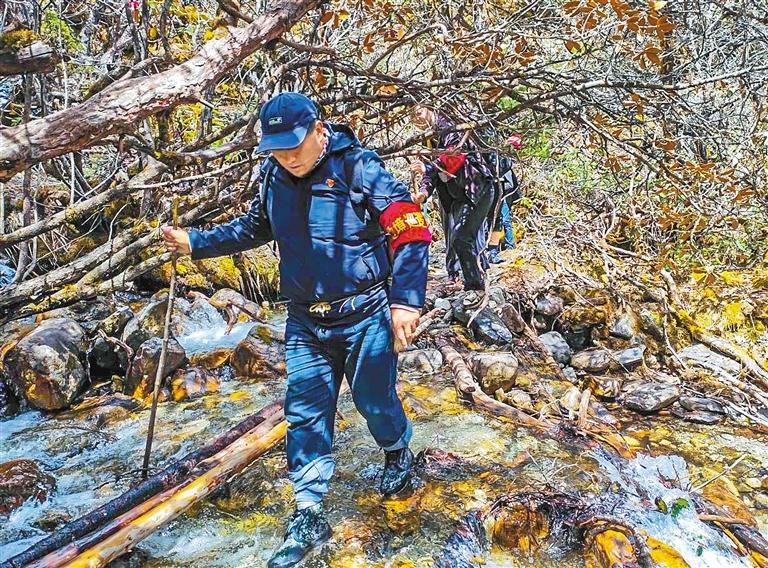 2017年冬天,勒布溝大雪紛飛。錯那縣勒鄉(xiāng)干部格桑旦增看著屋外的雪花,還是決定動身,去巡邊。一行4人小心翼翼往山上走,艱難到達巡邏標(biāo)記點,天色已晚,雪卻越下越大,深的地方已經(jīng)齊腰。格桑旦增思忖:“今天是回不去了?!彼麄?nèi)甜嚢ゐI,在風(fēng)雪中熬了10多個小時。第二天上午,勉強能看清四周樹木。格桑旦增壯膽帶路,一行人摸索徒步8公里,回到了村里。