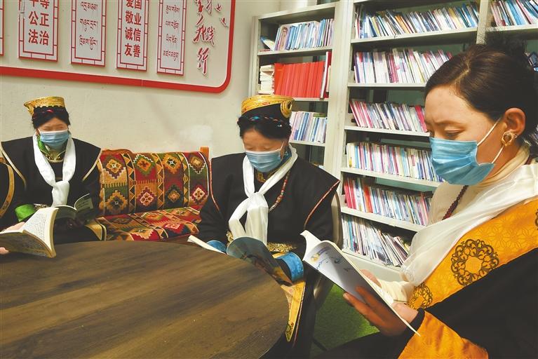 林芝市金達鎮(zhèn)加龍村群眾在農(nóng)家書屋讀書
