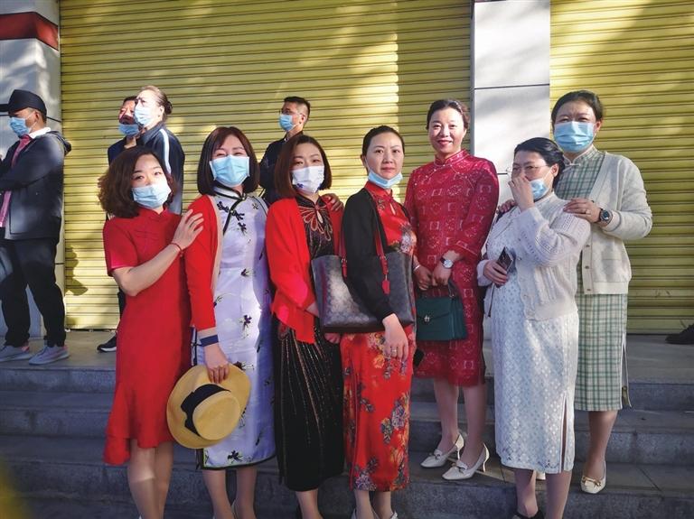 家長們組團穿旗袍為孩子加油助威。 文/圖 記者 張雪芳