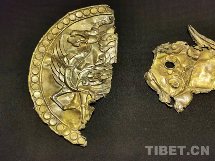 圖為青海都蘭熱水2018血渭一號大墓出土的鎏金飾片