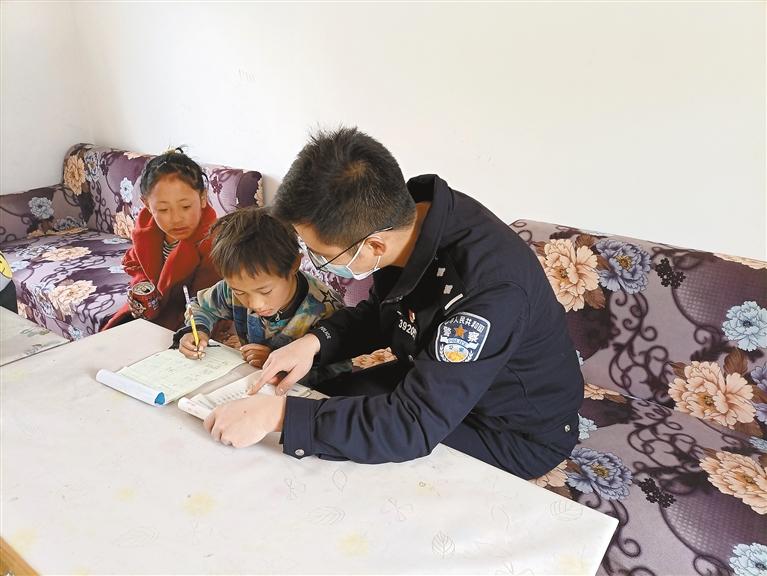 “老師,小扎西最近在學(xué)校表現(xiàn)的怎么樣?”扎西江措在上察隅鎮(zhèn)小學(xué)上一年級(jí),這個(gè)年齡段的孩子,最是調(diào)皮的時(shí)候,每當(dāng)派出所民警下鄉(xiāng)走訪經(jīng)過學(xué)校時(shí),都會(huì)找到小扎西的班主任詢問最近狀況。孩子們?nèi)粘W(xué)習(xí)、生活中的一舉一動(dòng),不僅牽動(dòng)著派出所民警的心,也牽動(dòng)著遠(yuǎn)在千里之外駐村民警化旦的心?!翱络鳎⒆觽冏罱€好嗎?我看物流信息顯示圖書和零食已經(jīng)到了,你們下鄉(xiāng)的時(shí)候就把東西帶過去……”2020年,化旦分配到上察隅邊境派出所,喜歡孩子的他,迅速和扎西、拉姆打成一片,平時(shí)只要有空便帶著學(xué)習(xí)、生活用品去看他們,為了迎合孩子們的興趣愛好,化旦也會(huì)從網(wǎng)上學(xué)習(xí)兒童歌曲、舞蹈,與孩子們一起唱歌跳舞。