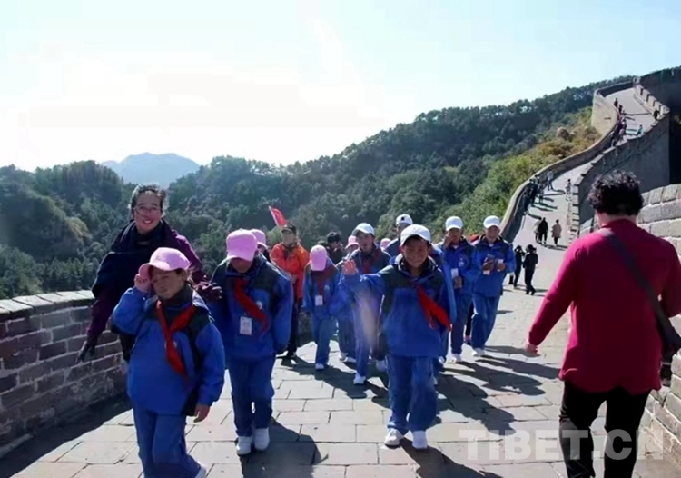 圖為那曲市特殊教育學(xué)校師生在長城參觀、學(xué)習(xí)