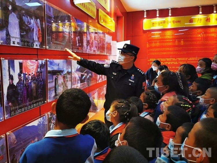 圖為民警帶領(lǐng)金東鄉(xiāng)小學學生前往林芝朗縣國門教育講習所開展紅色教育 攝影:徐華升