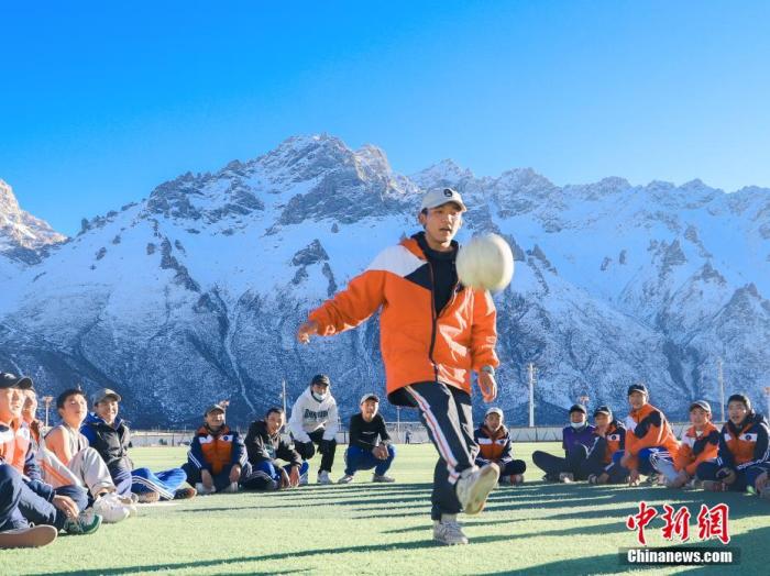 圖為11月25日,西藏那曲市嘉黎縣中學(xué)學(xué)生們?cè)凇把┥较碌膲?mèng)幻足球場(chǎng)”上進(jìn)行足球訓(xùn)練。 中新社記者 貢嘎來(lái)松 攝