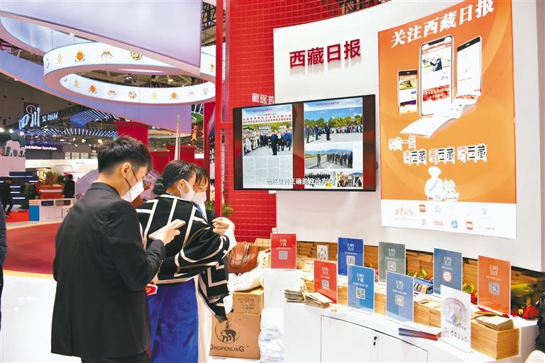 圖為參觀者在西藏傳媒集團(tuán)有限公司展位前了解產(chǎn)品詳情。記者 謝筱純 攝