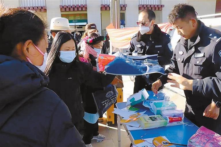 7日,日喀則市禁毒辦組織警力在日喀則火車站開展以“平安春運(yùn)·禁毒同行·遠(yuǎn)離毒品·健康生活”為主題的禁毒宣傳教育活動。