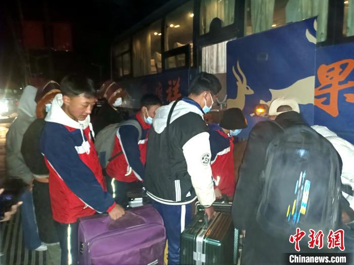 在地處數(shù)百公里外的西寧的青海省三江源民族中學(xué)就讀的初二學(xué)生合熱,一大早穿著過(guò)年新買的衣服,推著行李箱,早早到了指定乘車點(diǎn)。