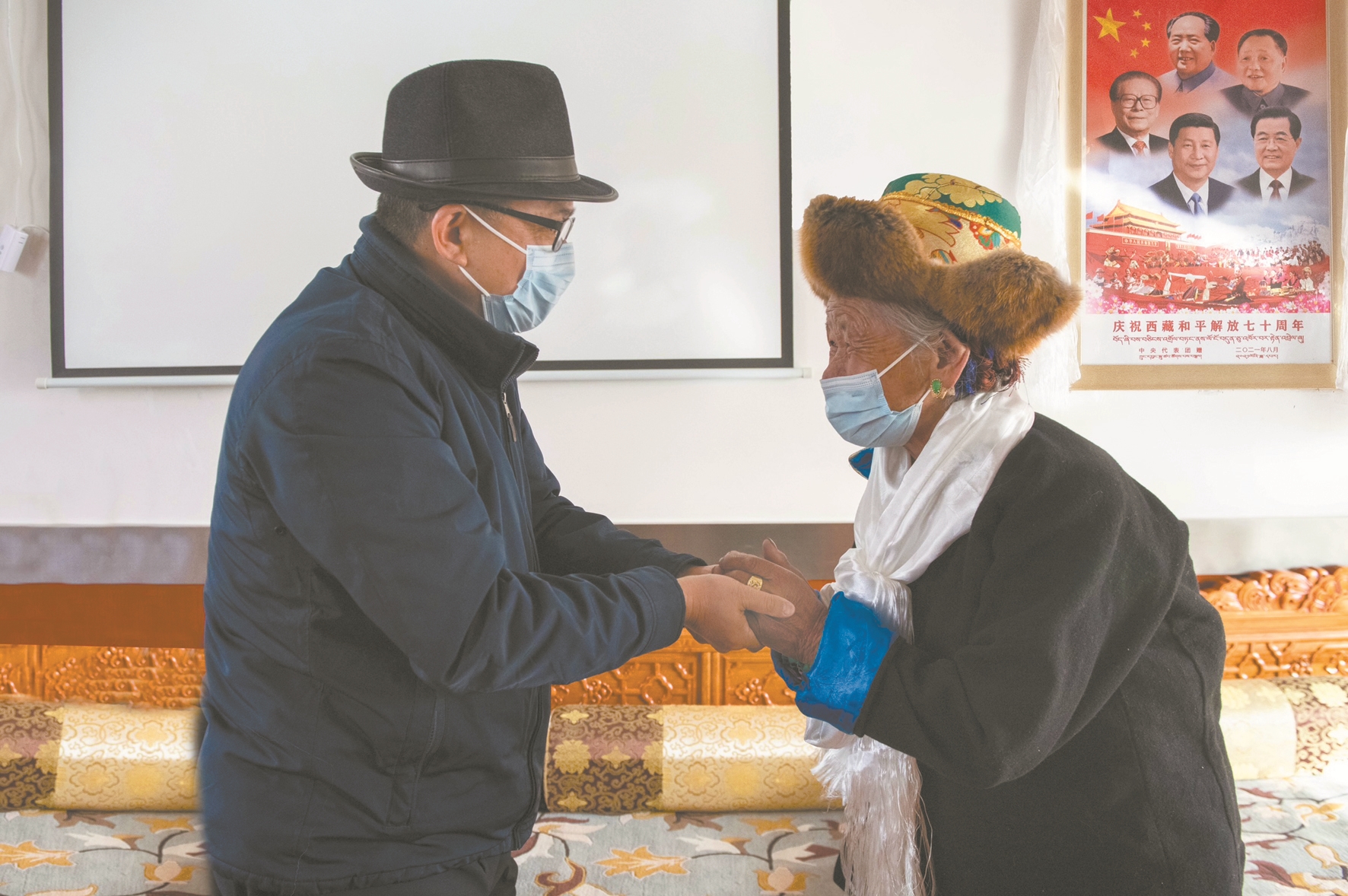 藏歷新年臨近,城關(guān)區(qū)特困人員集中供養(yǎng)中心內(nèi)暖意融融,在工作人員的悉心照料下,老人們幸福地安享晚年生活?!靶履昕鞓?、扎西德勒”,帶著黨和政府的關(guān)懷與溫暖,王強(qiáng)為老人們敬獻(xiàn)哈達(dá),致以節(jié)日美好祝福,關(guān)切地詢問老人們的飲食起居和身體狀況,語重心長地告訴大家黨的光輝照邊疆,要飲水思源,聽黨話、感黨恩、跟黨走,保重身體、樂享晚年。