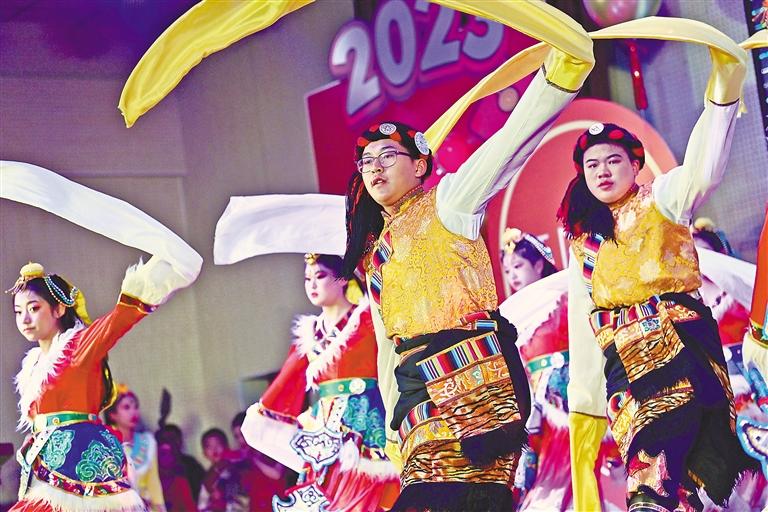 2月21日是藏歷水兔新年,陜西省唯一一所西藏班初中學校西安市浐灞第一中學,舉行了藏歷新年團拜活動。漢藏師生們通過表演歌舞、情景劇及藏樂器彈唱等節(jié)目,以及舉辦陜藏美食文化展等活動,共慶藏歷新年。