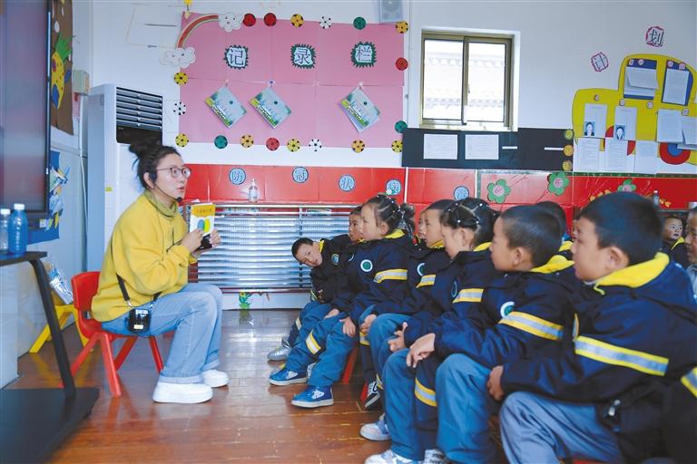 圖為工作人員給孩子們講故事。 本報記者 裴聰 攝