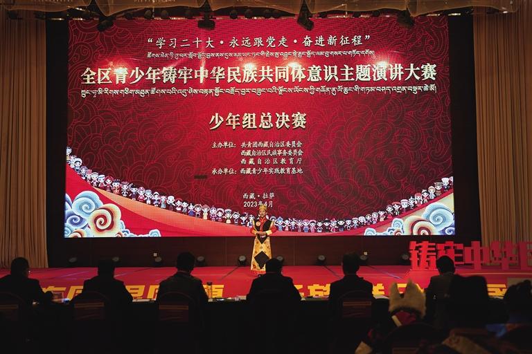4月7日,由共青團(tuán)西藏自治區(qū)委員會(huì)、西藏自治區(qū)民族事務(wù)委員會(huì)、自治區(qū)教育廳聯(lián)合主辦,西藏青少年實(shí)踐教育基地承辦的“學(xué)習(xí)二十大 永遠(yuǎn)跟黨走 奮進(jìn)新征程”全區(qū)青少年鑄牢中華民族共同體意識(shí)主題演講大賽總決賽在拉薩市舉行?,F(xiàn)場(chǎng),記者了解到,此次大賽歷經(jīng)3個(gè)月時(shí)間,覆蓋全區(qū)7市(地)、7所高校、74個(gè)縣(區(qū))、740余個(gè)村(居)、140所中小學(xué),2000余名各族青少年積極參加各級(jí)預(yù)賽,其中58名優(yōu)秀青少年4月7日在拉薩市參加少年組、村居展示組和青年組三個(gè)組別的總決賽。