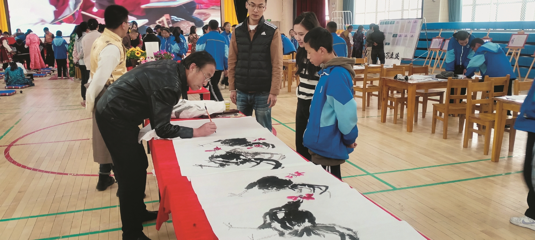 活動(dòng)為拉薩市柳梧初級(jí)中學(xué)愛(ài)好書(shū)法的師生提供了一個(gè)展現(xiàn)自我價(jià)值的平臺(tái),為充分展現(xiàn)中國(guó)書(shū)畫(huà)藝術(shù)魅力、繼承和弘揚(yáng)傳統(tǒng)的國(guó)粹文化藝術(shù),藝術(shù)家們揮毫潑墨,現(xiàn)場(chǎng)演繹國(guó)畫(huà)和書(shū)法經(jīng)典,以提升廣大師生的藝術(shù)修養(yǎng)和審美情趣,激發(fā)大家研學(xué)書(shū)法的興趣和愛(ài)好。